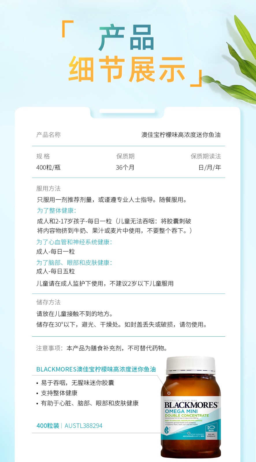 Blackmores 无腥鱼油迷你小颗粒版 400粒