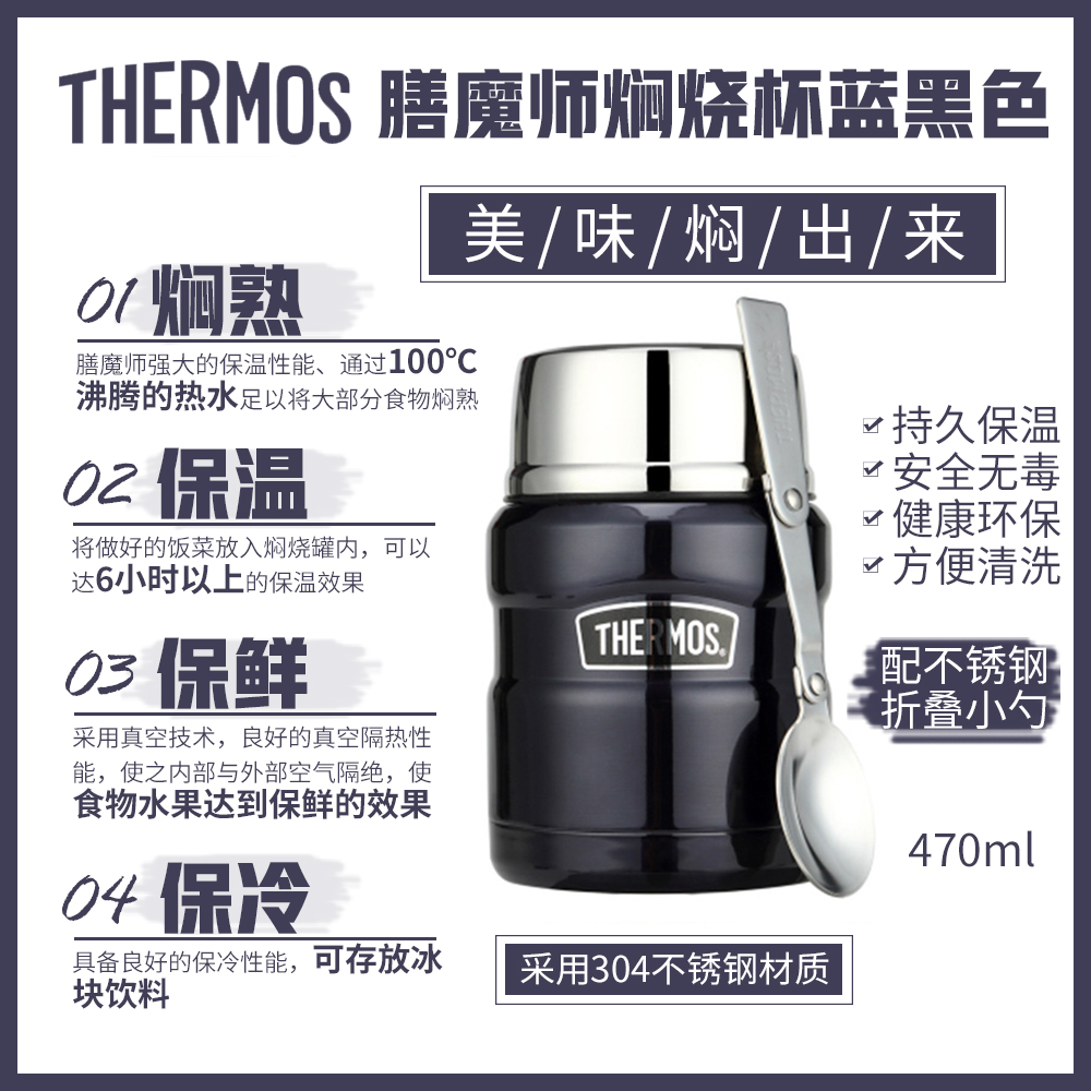 Thermos 膳魔师焖烧杯蓝黑色470ml